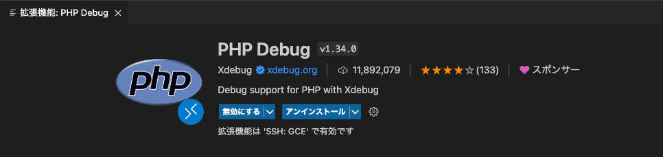 Xdebugを用いたデバッグには公式が出している「PHP Debug」拡張が必要になりますので予めインストールしておきましょう。