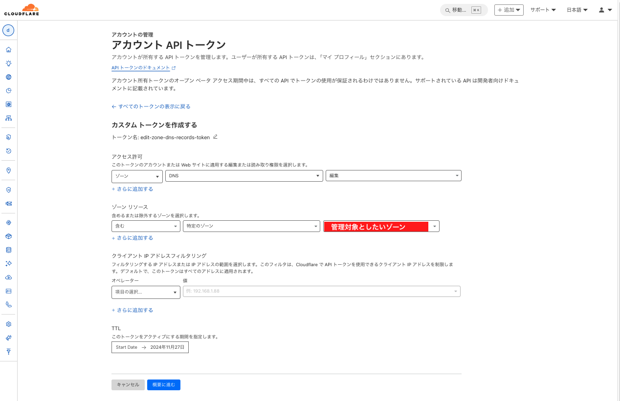 概要の画面で表示される設定内容に問題がなければ、ガイドに従ってトークンを作成します。