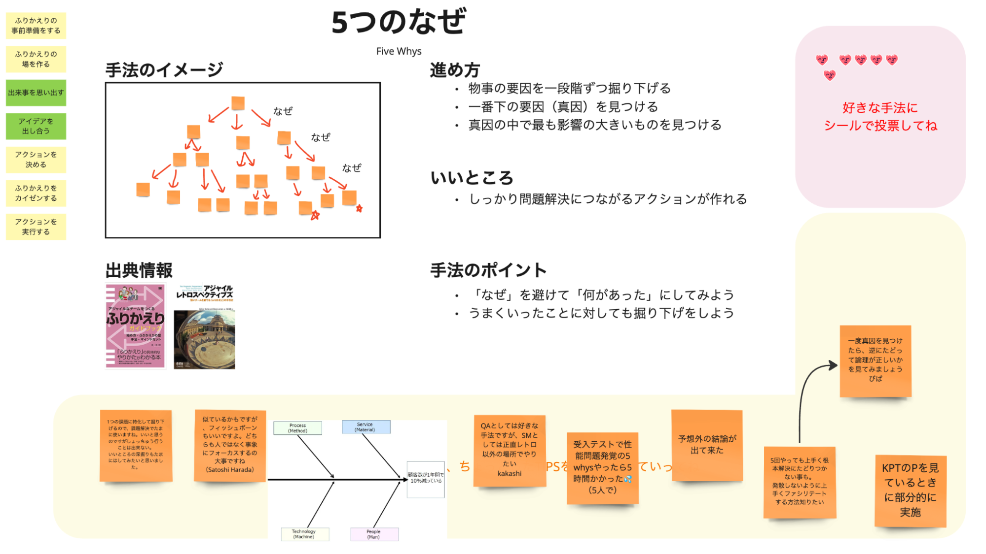 を段階的に掘り下げていき、根本原因をチーム全員で見つけます。振り返りでは「私が悪い」というワードは一切出てきませんでした。
