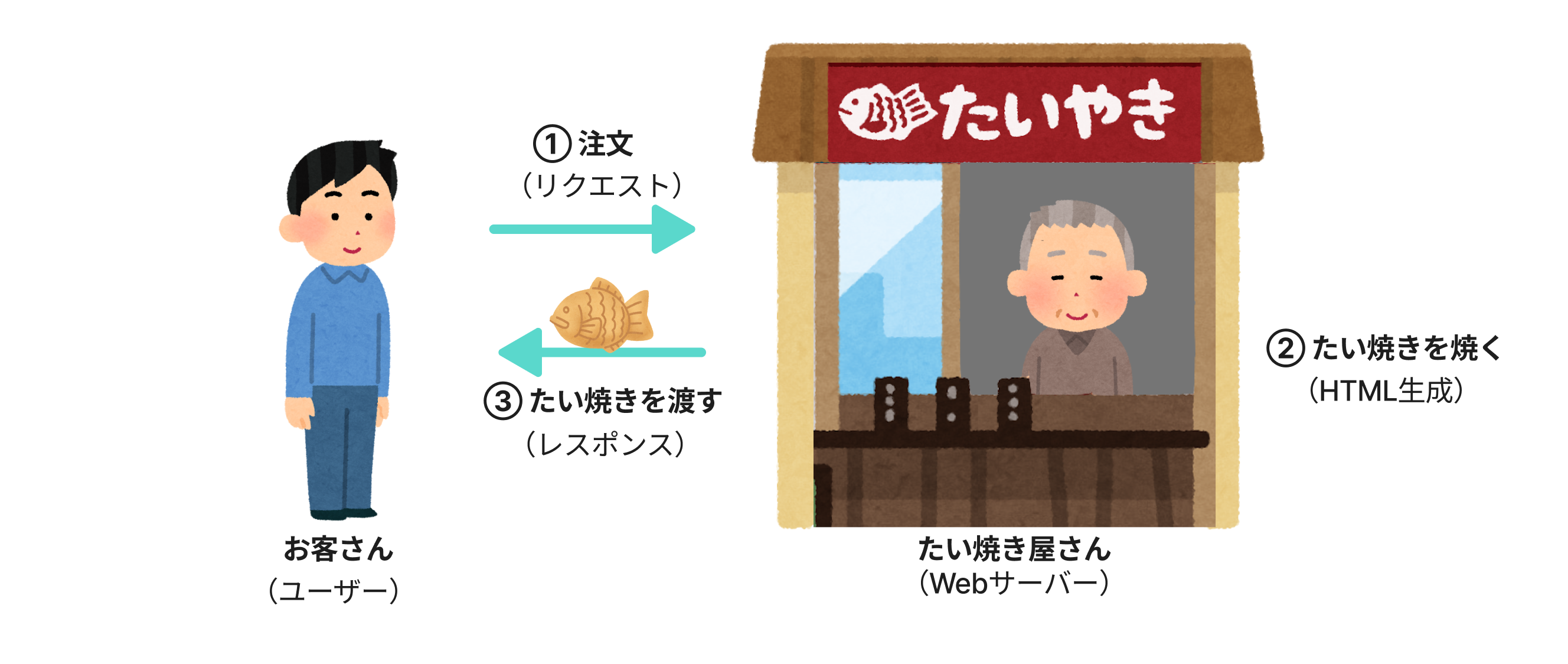 最後にお客さんに出来上がったたい焼きを渡します(③レスポンス)。